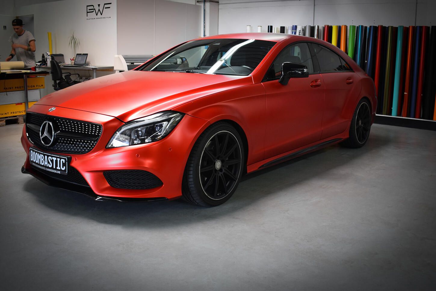 Rot ist Liebe, rot ist Leidenschaft, rot ist sexy und auf keinen Fall unauffällig. Dafür ist das Matt Anodized Red 2.0 hier auf einem Mercedes Benz CLS das beste Beispiel. Dieser dunkle und beständige Farbton ist ein Produkt aus der PWF Exclusive-Line von Bruxsafol, das nur von zertifizierten Fachbetrieben verklebt werden darf. Und wie diese beeindruckende Farbe es nun mal an sich hat, macht sie jedes Auto zum echten Hingucker!